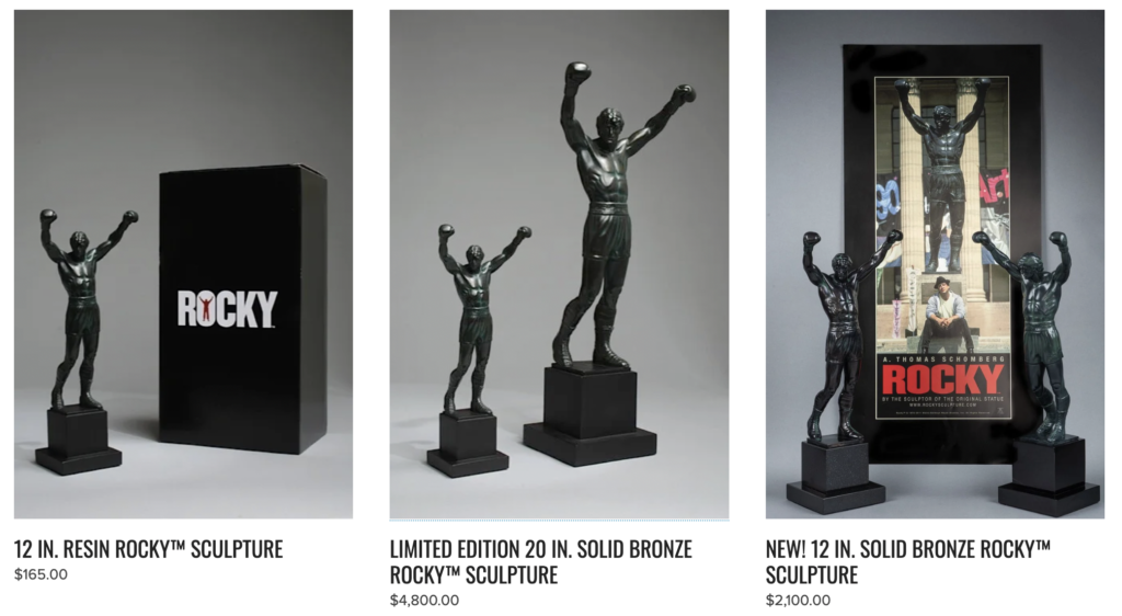 Või kui raha on puuga seljas, siis sul on võimalik osta autentne Rocky skulptuuri koopia otse selle loonud kunstnikult, A. Thomas Schombergilt.