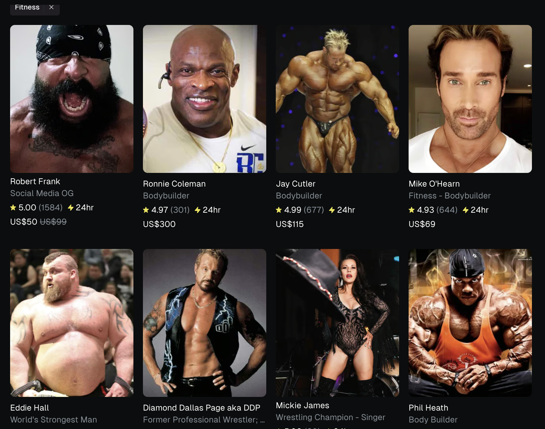 Sealt saab tellida tervitusvideoid kulturismilegendidelt nagu Ronnie Coleman, Lee Priest ja Flex Wheeler, fitness-influenceritelt nagu Mike O’Hearn ja Kali Muscle või maailma tugevaimatelt meestelt, rammumeestelt Hafthor Julius Bjornssonilt ja Eddie Hallilt.